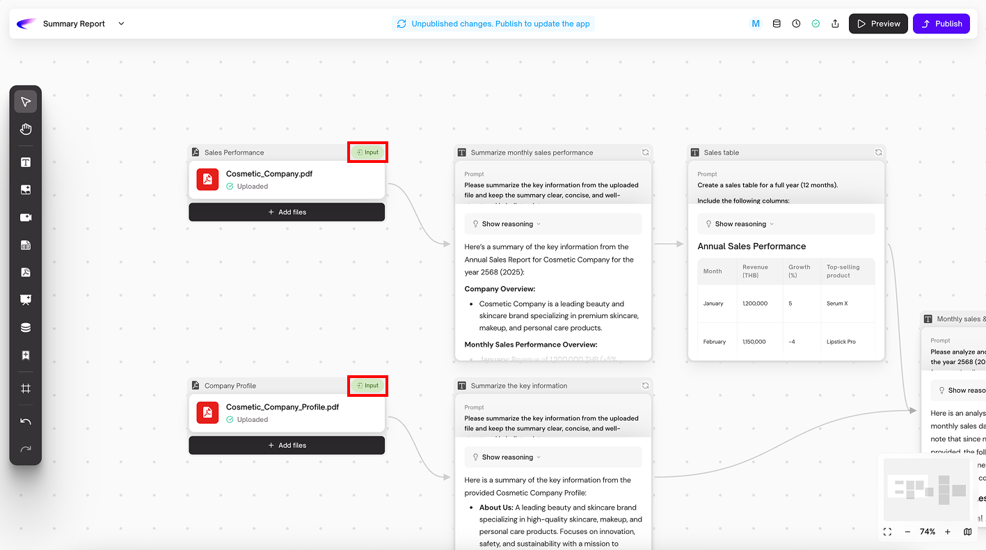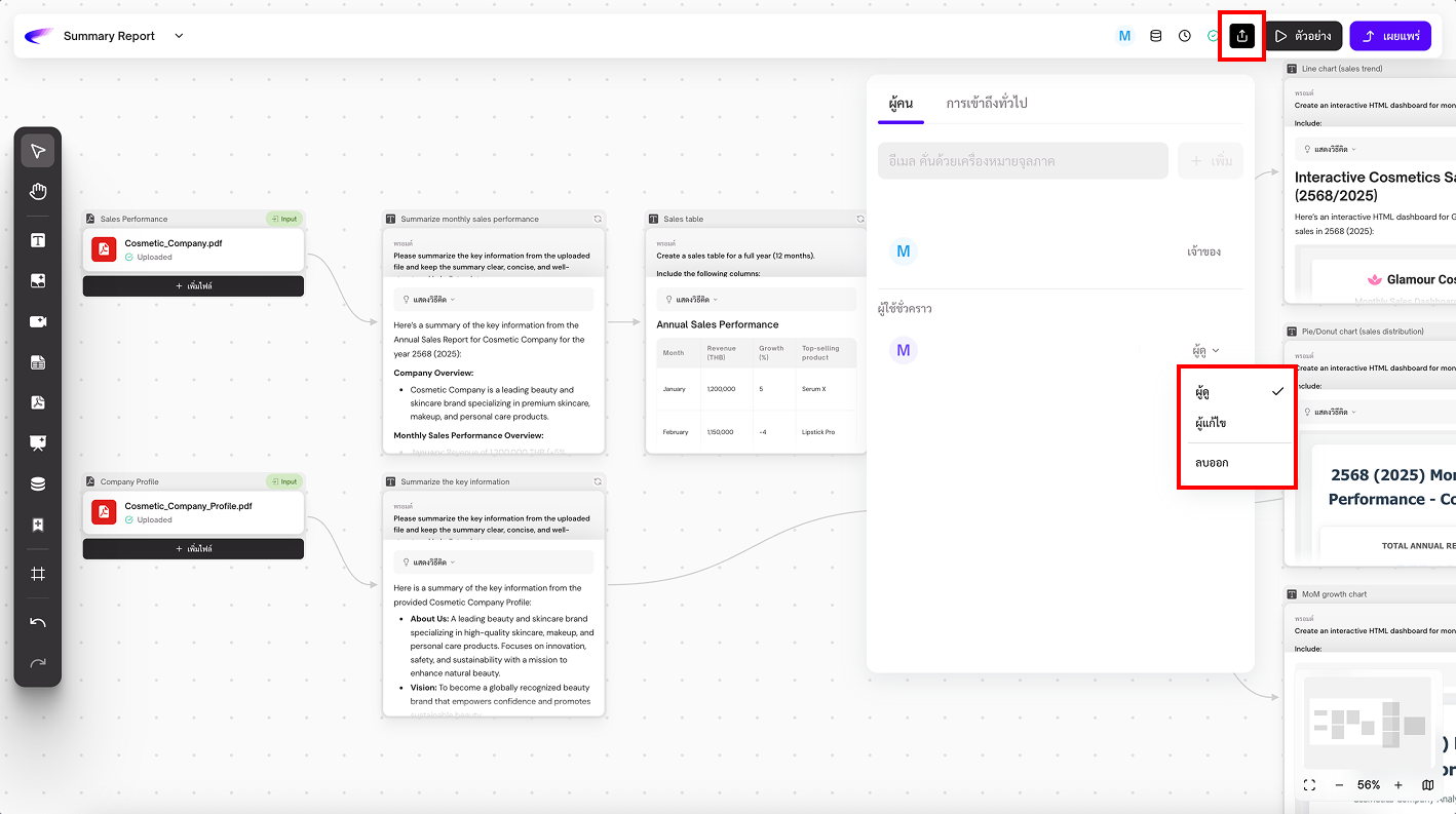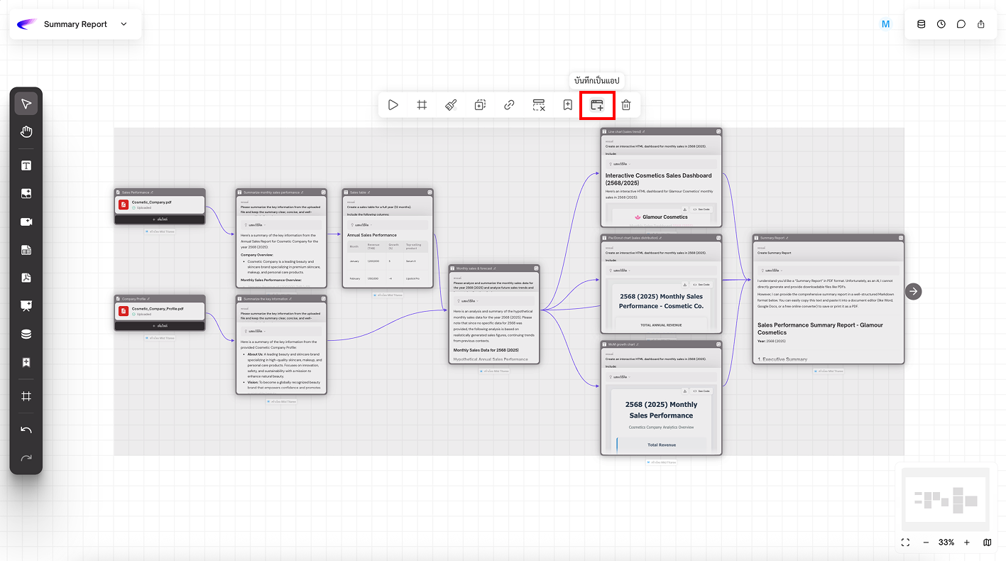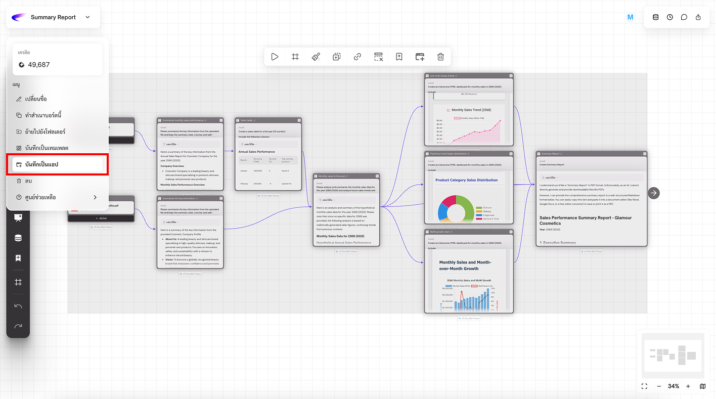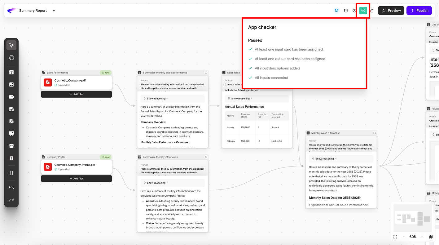 3. **Workflow Output:** กำหนดให้การ์ดนี้เป็น “ผลลัพธ์” ของแอป เป็นสิ่งที่ผู้ใช้จะเห็นหลังจากการรัน App เสร็จ